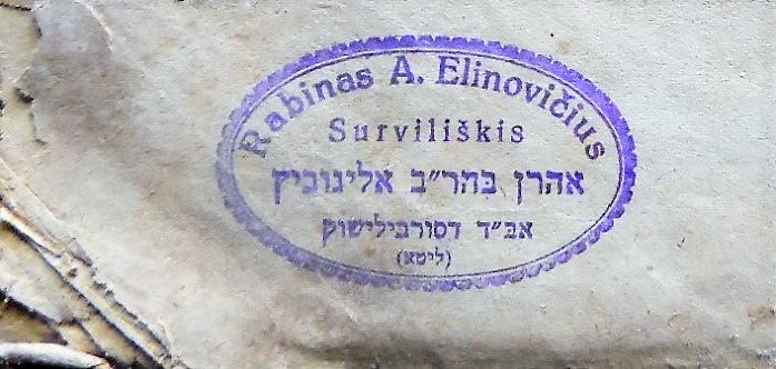 Netikėtumai laukia ne tik tyrinėjant pačias knygas, jų apstu ir tarp lapų. Besklaidydama vieną iš daugelio rabinui Aronui Elinovičiui priklausiusių knygų radau iškarpą iš Amerikoje leisto tarpukario laikraščio, kuriame aprašomas jo vizitas Vašingtone. Rabinas Aronas Elinovičius, gimęs Vilkaviškyje 1900 m., tarnavo rabinu Surviliškyje ir buvo paskutinis Aukštadvario rabinas.