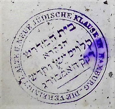 Sena ir Nauja Sinagoga šventos Hamburgo bendruomenės, teapsaugo ją Dievas, atminimui sero teisuolio Simono Zevo, vadinamo Baronu Vilhelmu fon Rotšildu, palaiminto atminimo teisuolio iš Frankfurto prie Maino bendruomenės, kuris atgulė poilsio Dievo prieglobstyje per šventą šabą Švat mėnesį 6 dieną 5661 (1901) metais.