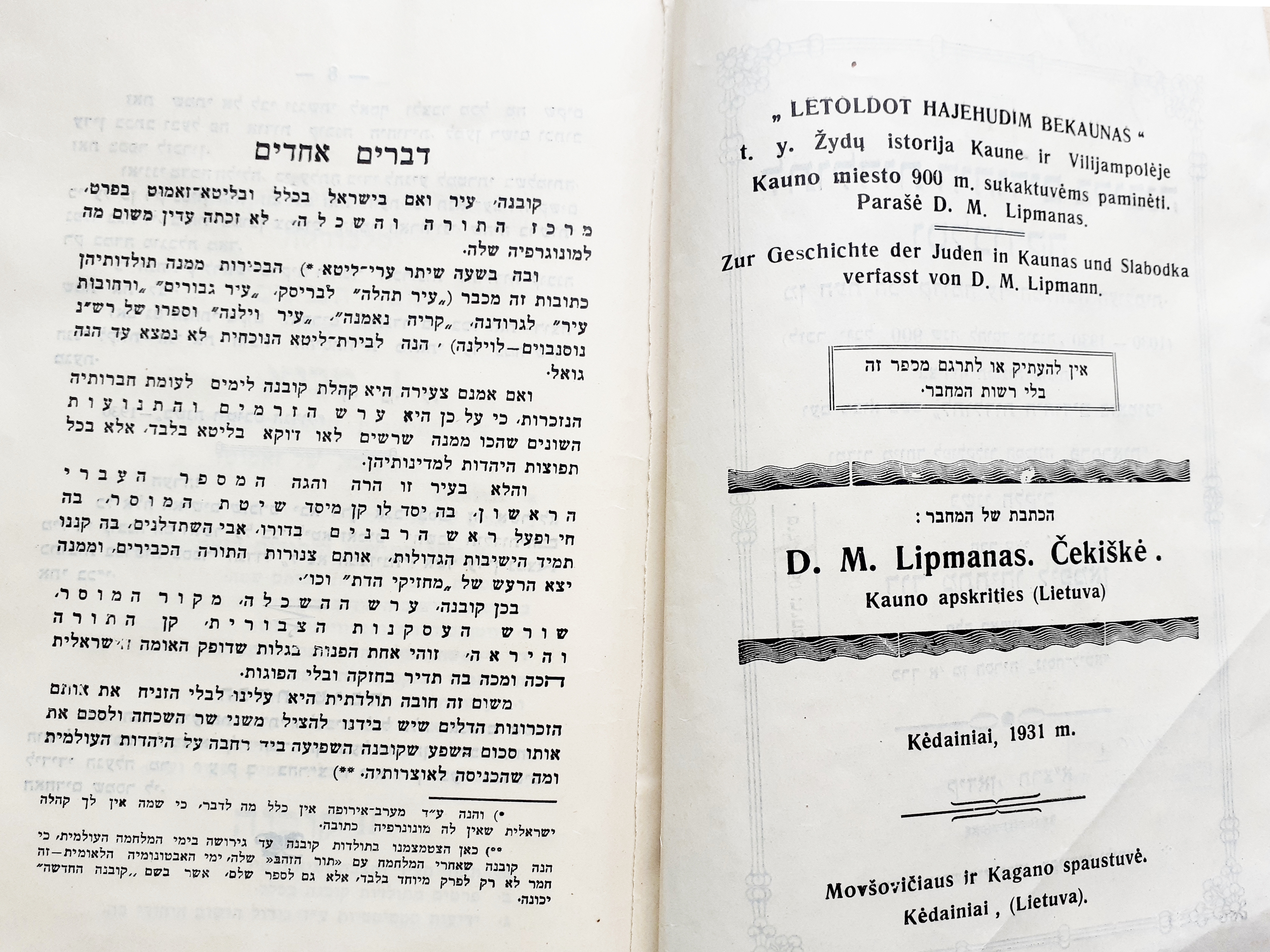 8Lietuvos žydų istoriko jubiliejus: D. M. Lipmanas – 50. Apžvalga, Nr. 2 (121), 1938 01 09 https://www.epaveldas.lt/recordText/LNB/C10000036848/Saus.9.pdf?exId=94034&seqNr=1