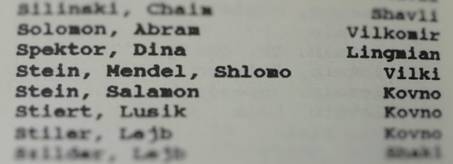 Archyve yra paso, išduoto 1920 m. Vilkijoje gimusiam Šleimei Mendeliui Šteinui, registracijos kortelė. Šloimas, Šlioma, Šleimė, Šlomo, Šliomas, Solomonas, Zalmanas, Zalmenas, Saliamonas – tai skirtingi to paties vardo Šlomo/Shlomo variantai.