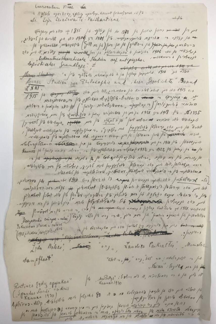 E. Eljaševaitės gyvenimo aprašymas. LNB judaikos archyvas.