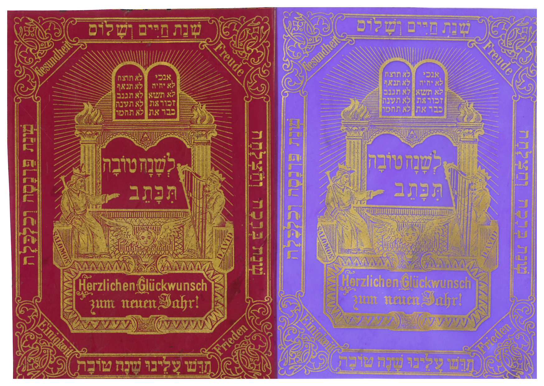 Saldainių pakavimo popierėliai su žydų Naujųjų metų palinkėjimu „Palaimintų ir sėkmingų metų, būkite įrašyti į dangaus Gyvenimo knygą“. Šventės metu taip pat yra priimtina linkėti saldžių metų, todėl nekeista, kad ir šie naujametiniai sveikinimai puikuojasi ant saldainių popierėlių. LNB Judaikos kolekcija.