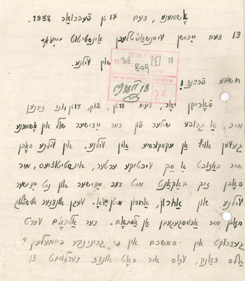 Labai įdomu pažvelgti, kaip 1937 m. YIVO atrodė moksleivių akimis, todėl šį #jidišpenktadienį dalinamės jų pasakojimu, kuris pasirodė „Žaliųjų medelių“ 1938 m. vasario numeryje. Su šiuo ir kitais laiškais išsamiau bus galima susipažinti šiuo metu rengiamoje YIVO korespondencijos antologijoje.