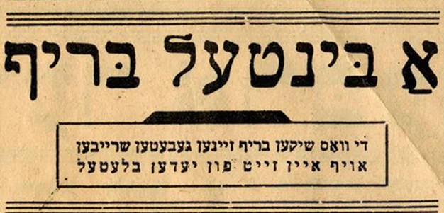 Tekstas parengtas remiantis knyga „A Bintel Brief: Sixty Years of Letters from the Lower East Side to the Jewish Daily Forward“ (Isaac Metzker, red., Harry Golden, įžanga).