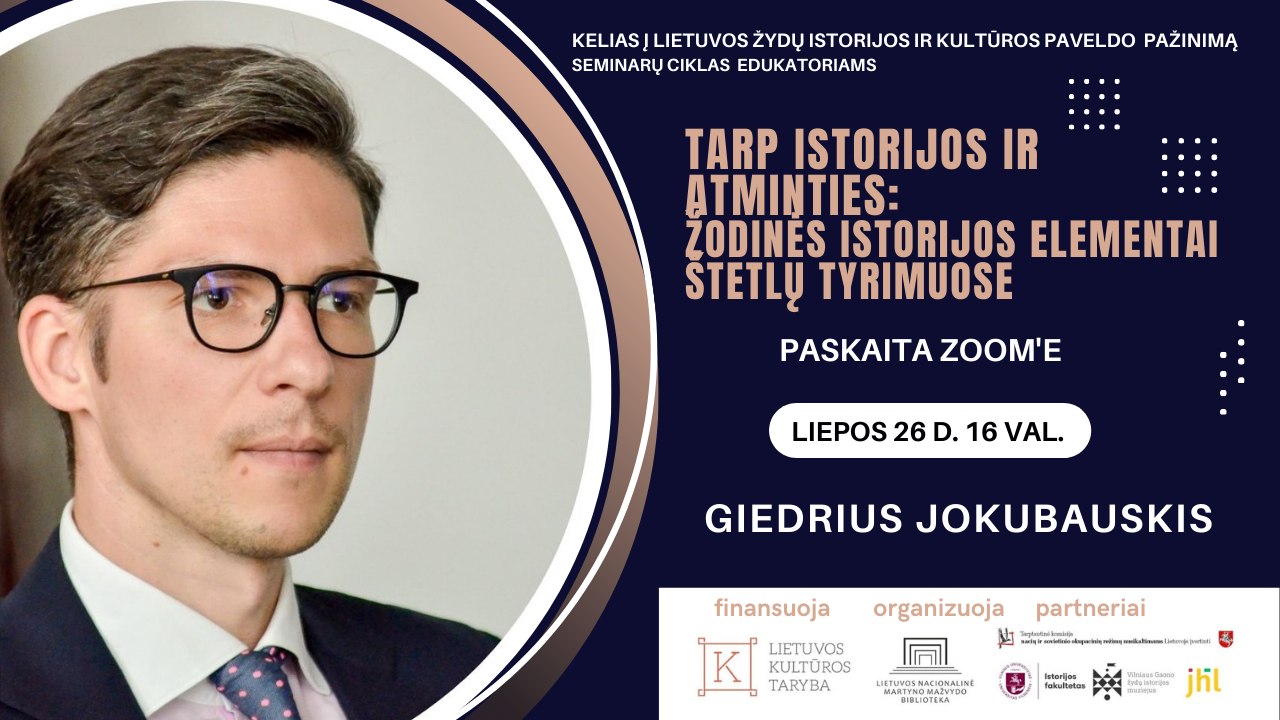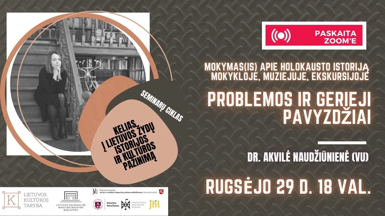 2022 balandžio-lapkričio mėnesiais vykusiame seminarų cikle „Kelias į Lietuvos žydų istorijos ir kultūros paveldo pažinimą“ buvo skaitomos paskaitos, vyko praktiniai užsiėmimai, juose dalyvavo kelios dešimtys edukatorių iš visos Lietuvos. Jei domitės žydų istorijos tyrimais ir esate kelio pradžioje, kviečiame naudotis paskaitų medžiaga ir rekomenduojamos literatūros sąrašais. Skaidrėse rasite vertingų patarimų apie informacijos paieškas, darbą archyvuose, tyrėjų ir edukatorių etiką, surinktos medžiagos organizavimą ir jos pristatymą, kūrybinį rašymą. Šiame puslapyje matote ir plakatus, kuriais seminarų dalyvius kvietėme į paskaitas 2022 m.