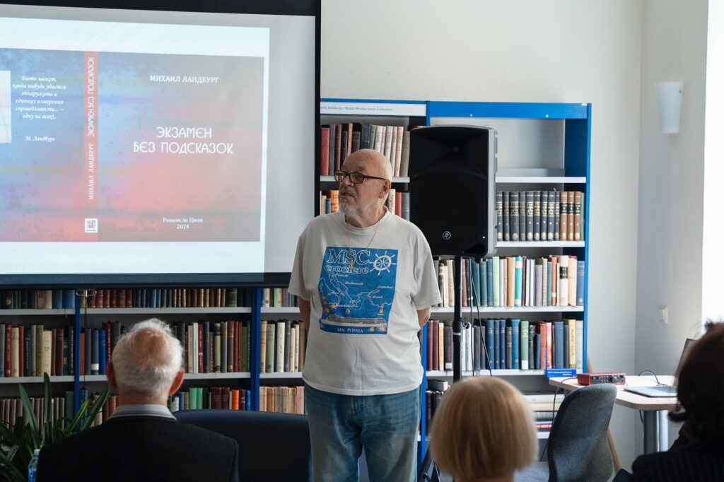Saulėtą pirmadienio popietę žydų viešojoje bibliotekoje viešėjo ypatingas svečias – rašytojas Michailas Landburgas. Gausiai susirinkusi publika su didžiausiu malonumu klausėsi naujos rašytojo knygos „Egzaminas“ (Rišon Lecijonas, 2024) pristatymo. Renginį moderavo Tarptautinės rašytojų ir publicistų asociacijos (APIA) prezidentas Levas Mesengiseris, knygos autorius pradžiugino visus skaitydamas kūrinių ištraukas.