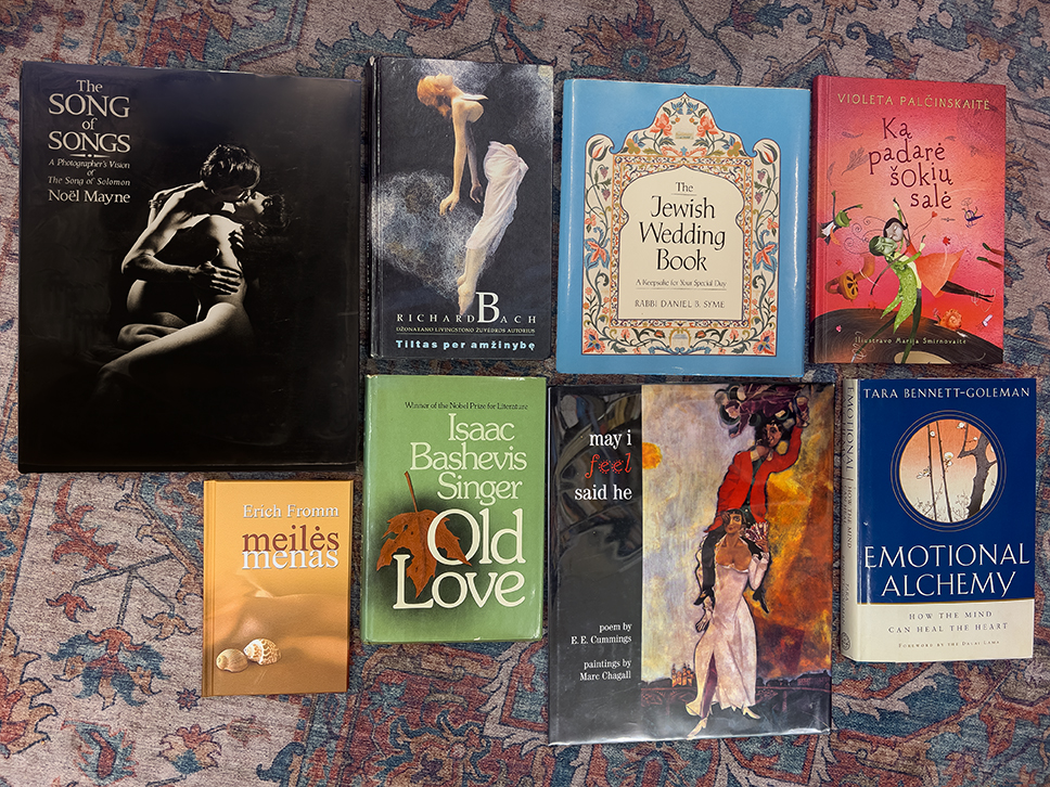 O kartais meilė prabyla vaizdais. Albumai su Marc Chagall piešiniais atveria kitokią – sapnišką, lengvą, pakylėtą – meilės viziją. Jo paveiksluose įsimylėjėliai sklendžia virš miestų stogų, laikosi už rankų lyg nepavaldūs gravitacijai. Tai primena, kad meilė gali pakylėti virš kasdienybės ir suteikti sparnus.