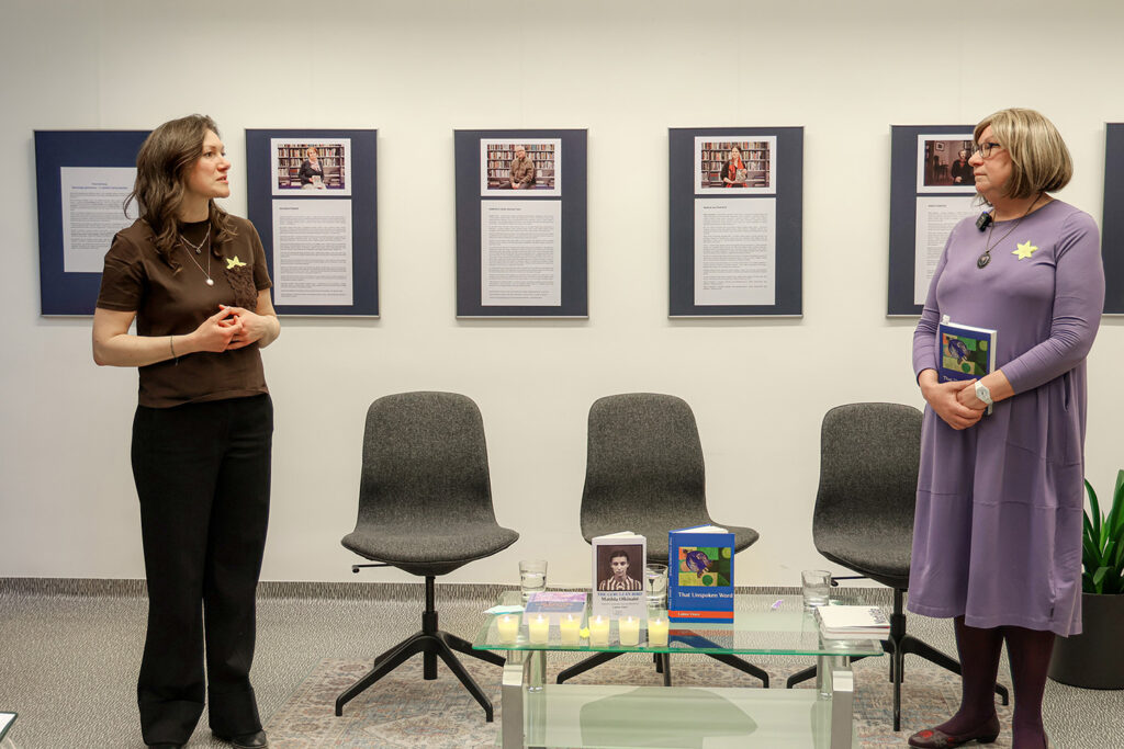 Vakaro metu rašytoja, poetė, dramaturgė bei dailininkė Laima Vincė pristatė savo naujausią knygą – anglų kalba išleistą romaną „That Unspoken Word “. Renginio metu autorę kalbino Judaikos tyrimų centro vadovė dr. Lara Lempertienė.